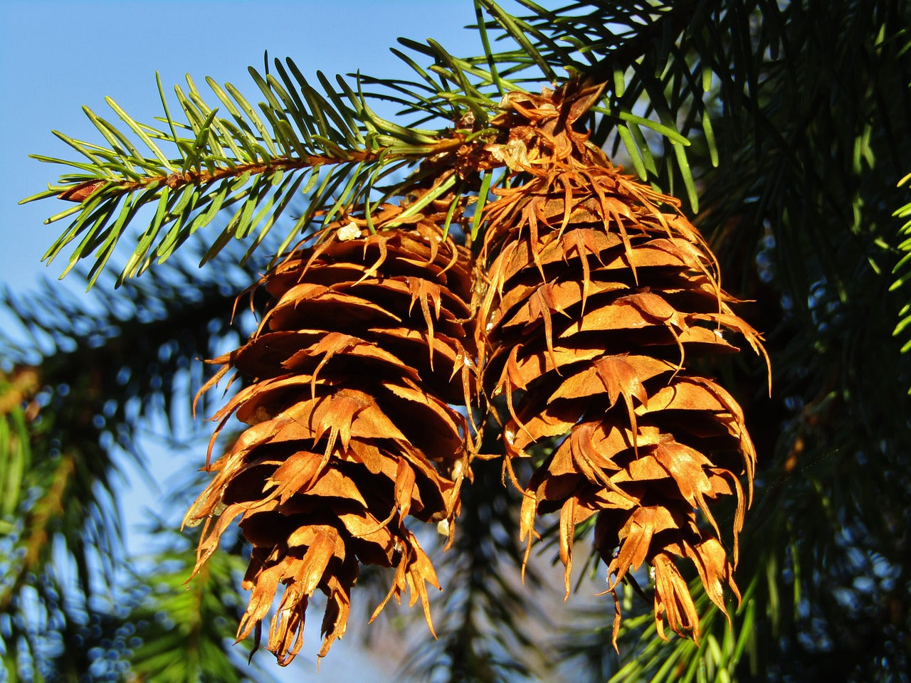 wind-blown seeds that travel for many kilometres. Flat, soft needles, pale on underside. Distinctive three-pronged scales on cones.